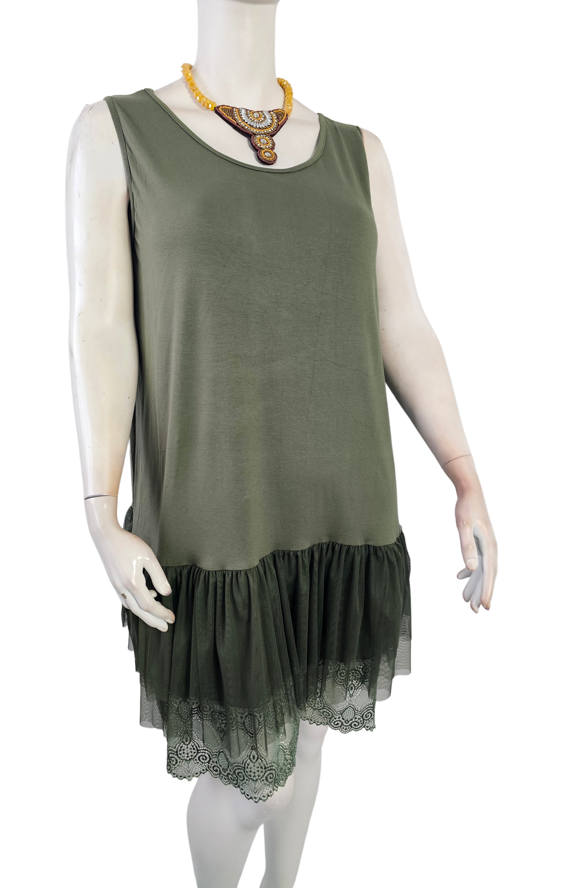 Modèle en viscose et lycra. Bas de robe en 3 rangs de tulle et dentelle qui doivent dépasser lorsqu'ils sont portés en superposition