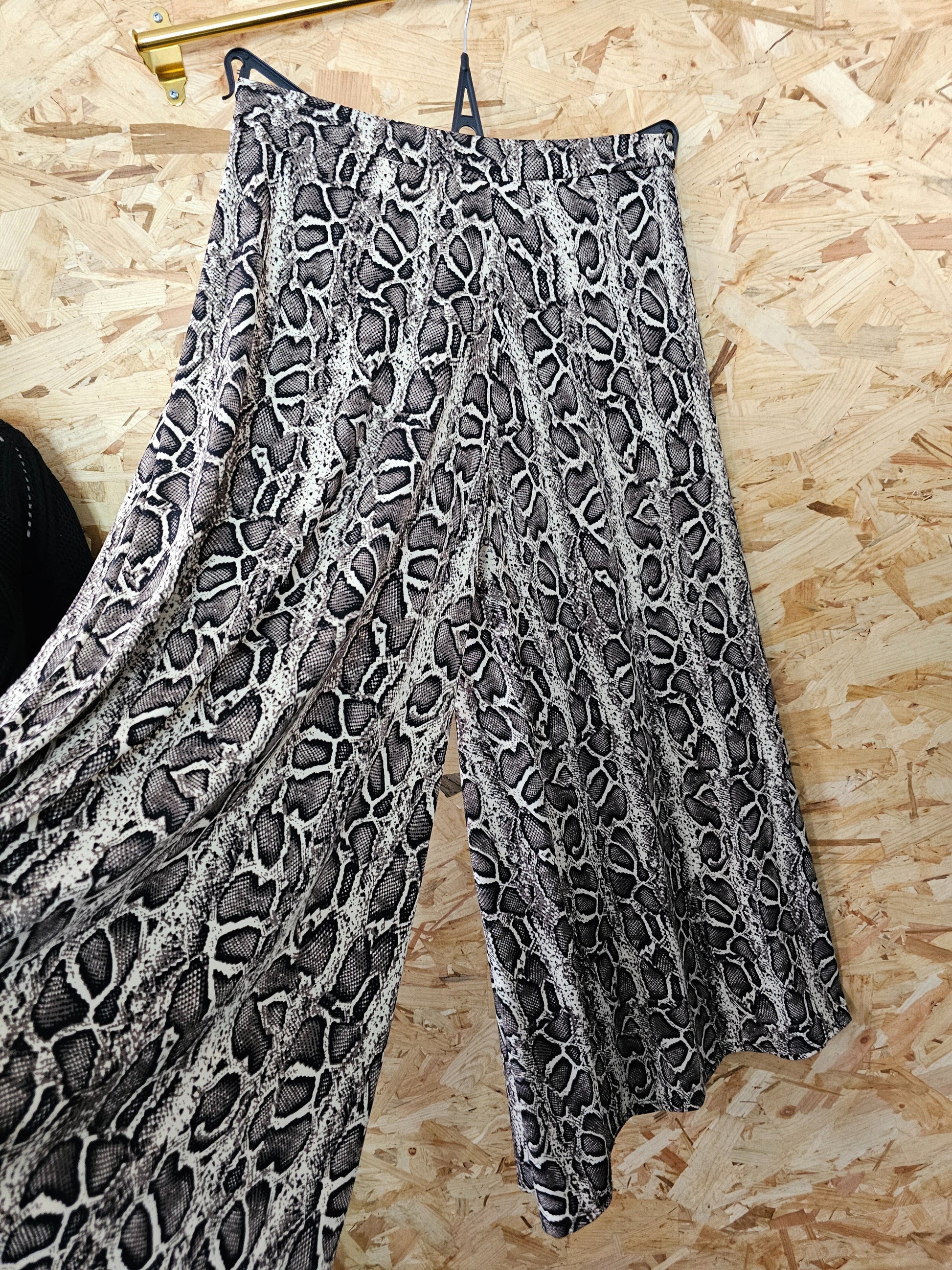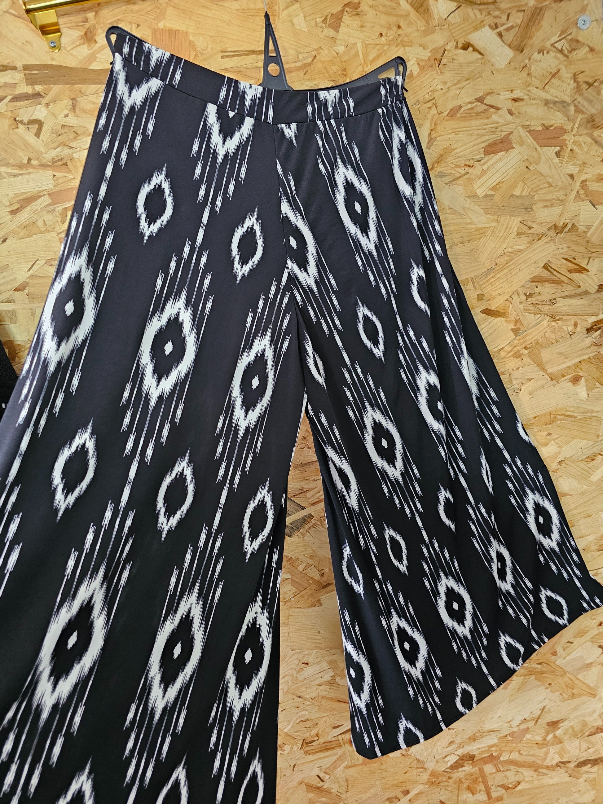 Ce pantalon large en maille fluide et super stretch offre une silhouette élégante grâce à sa coupe jupe-culotte longue. Sa taille unique, dotée d’un élastique plat très confortable, épouse parfaitement les formes sans comprimer.