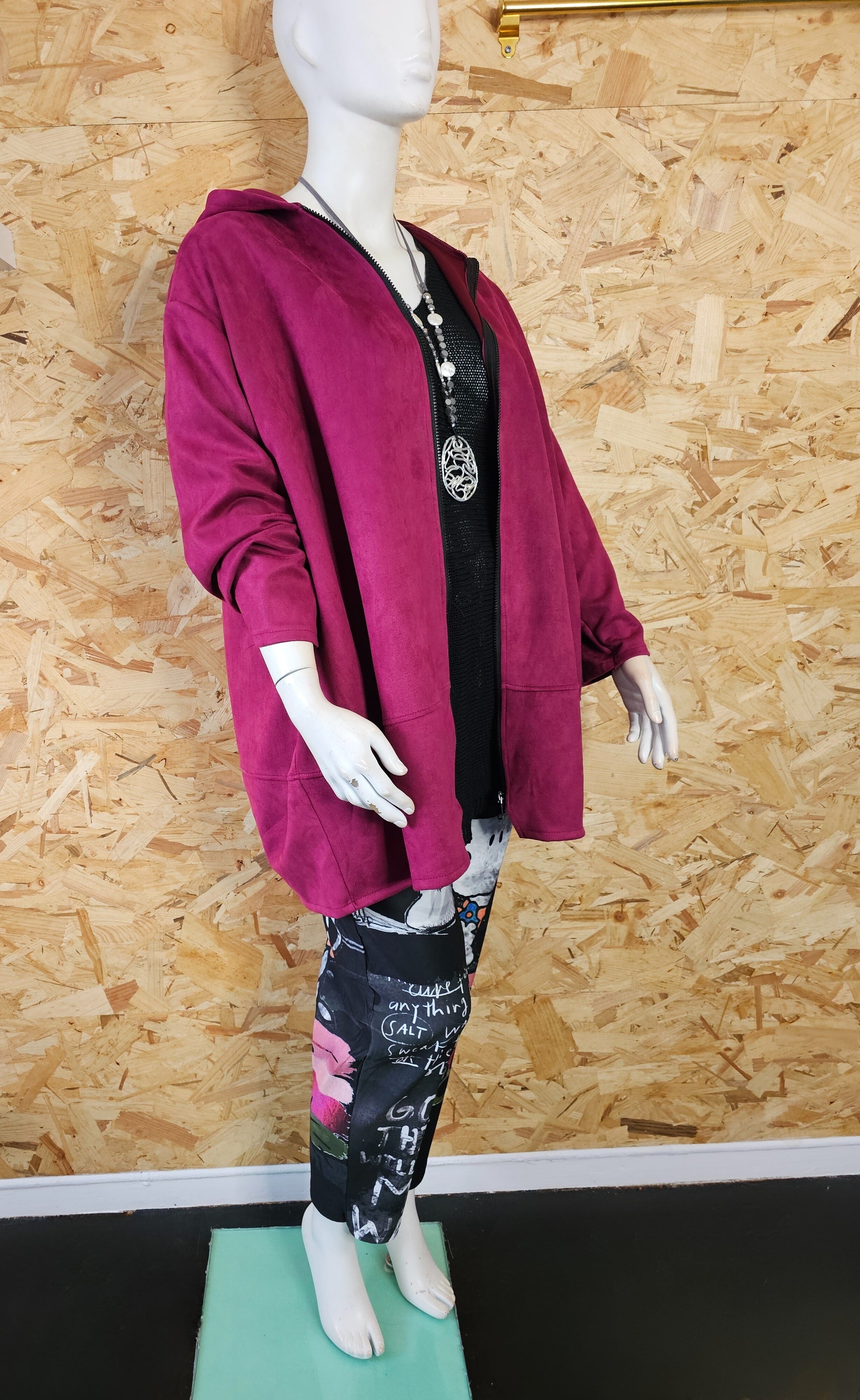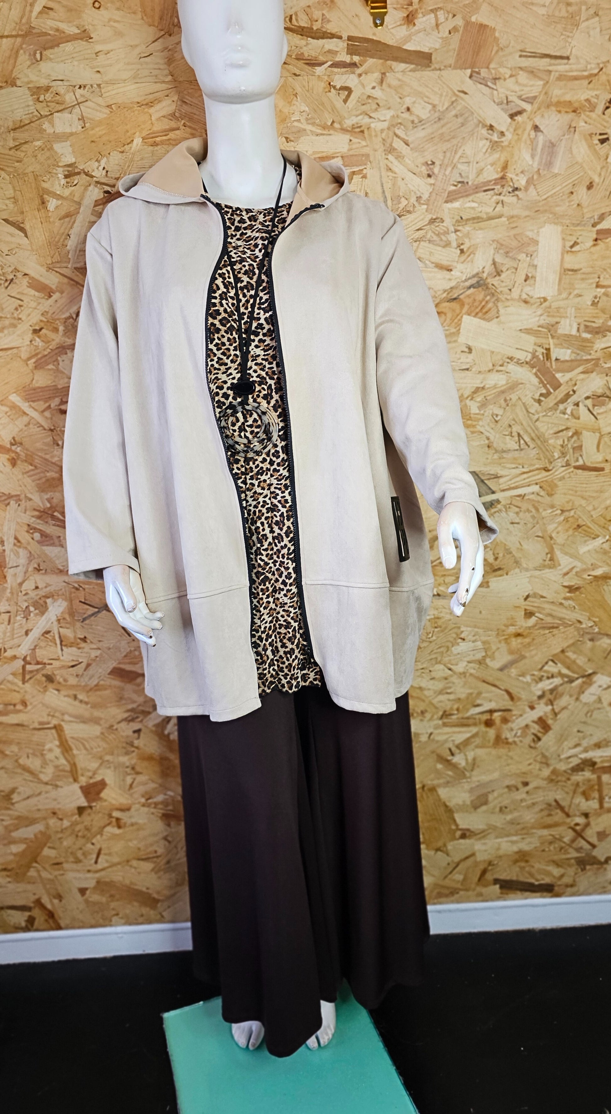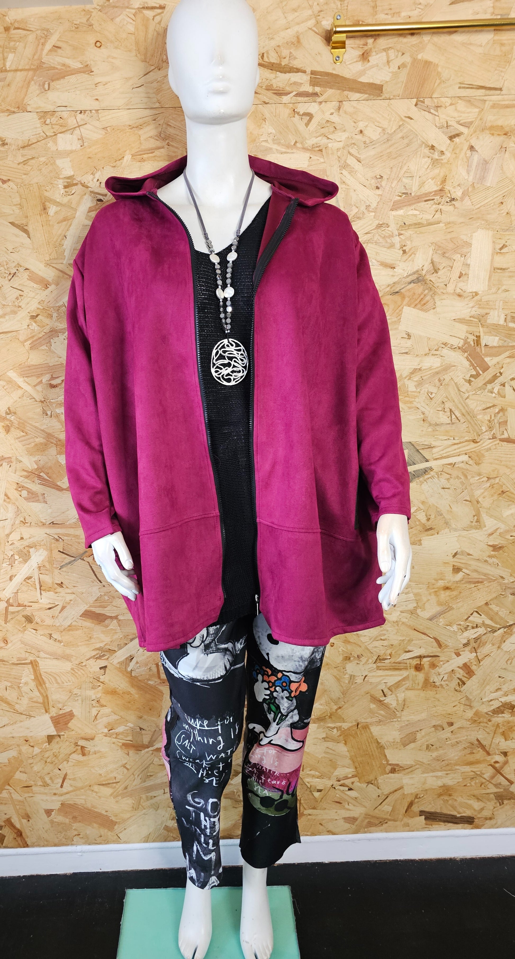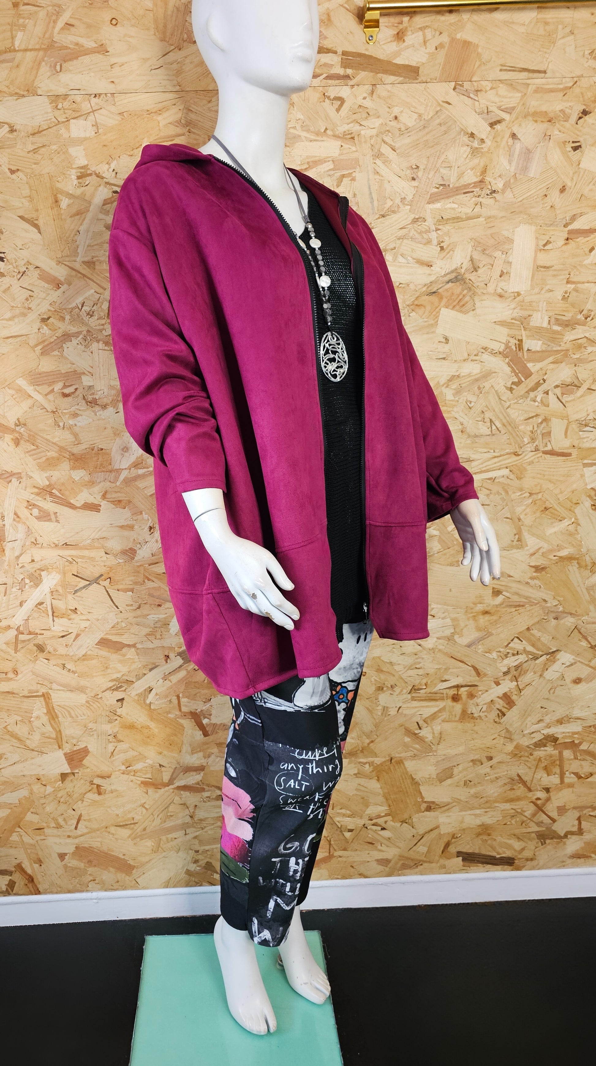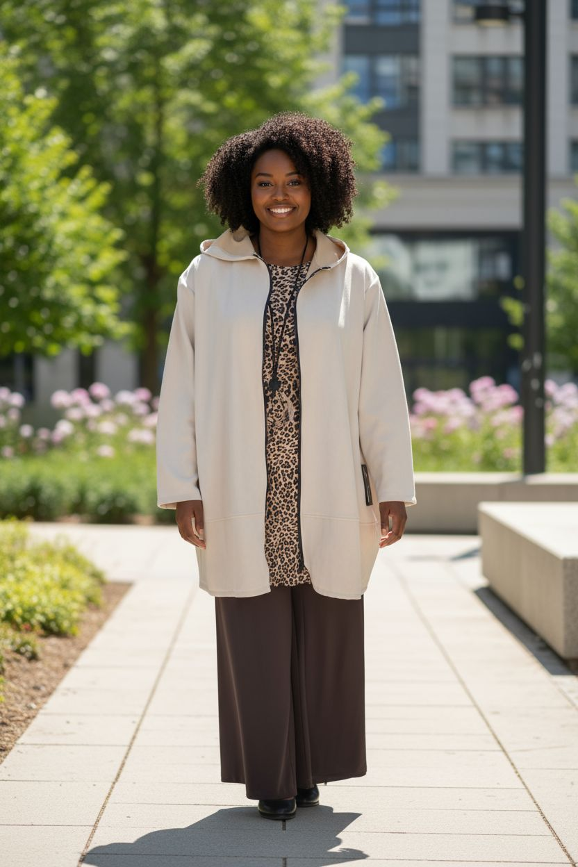 Sa taille unique s’adapte aisément du 46/48 au 58/60, offrant une coupe confortable pour diverses silhouettes.