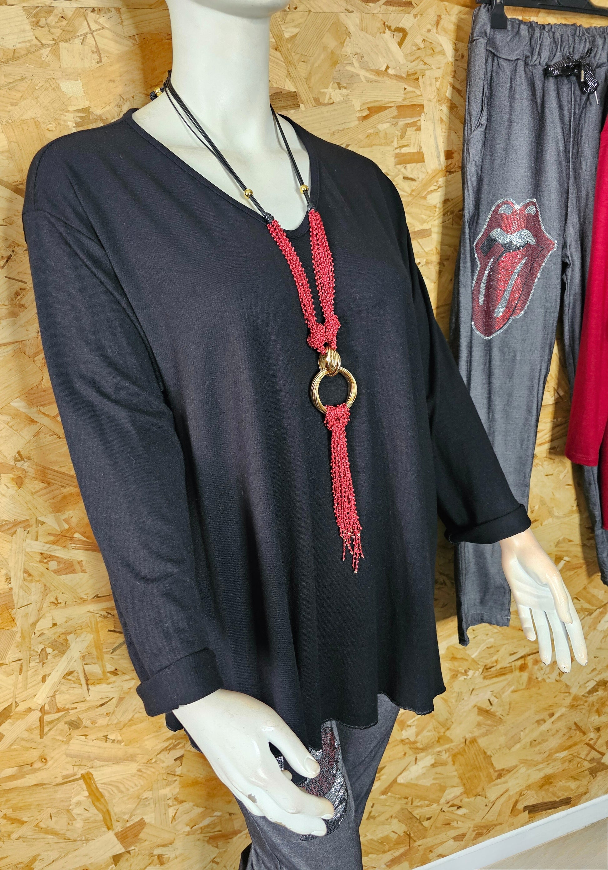 Découvrez notre pull col V incontournable, alliant élégance intemporelle et confort absolu. Confectionné dans une maille fine ultra douce, ce basique se distingue par sa composition lainage ultra stretch qui épouse délicatement votre silhouette. Sa coupe évasée flatteuse crée une ligne harmonieuse, tandis que le col V affine subtilement le buste. Disponible en noir classique ou bordeaux sophistiqué, ce pull multifonctions s'associe facilement à vos tenues du quotidien. Une pièce maîtresse de votre garde-robe, alliant style intemporel et praticité.
