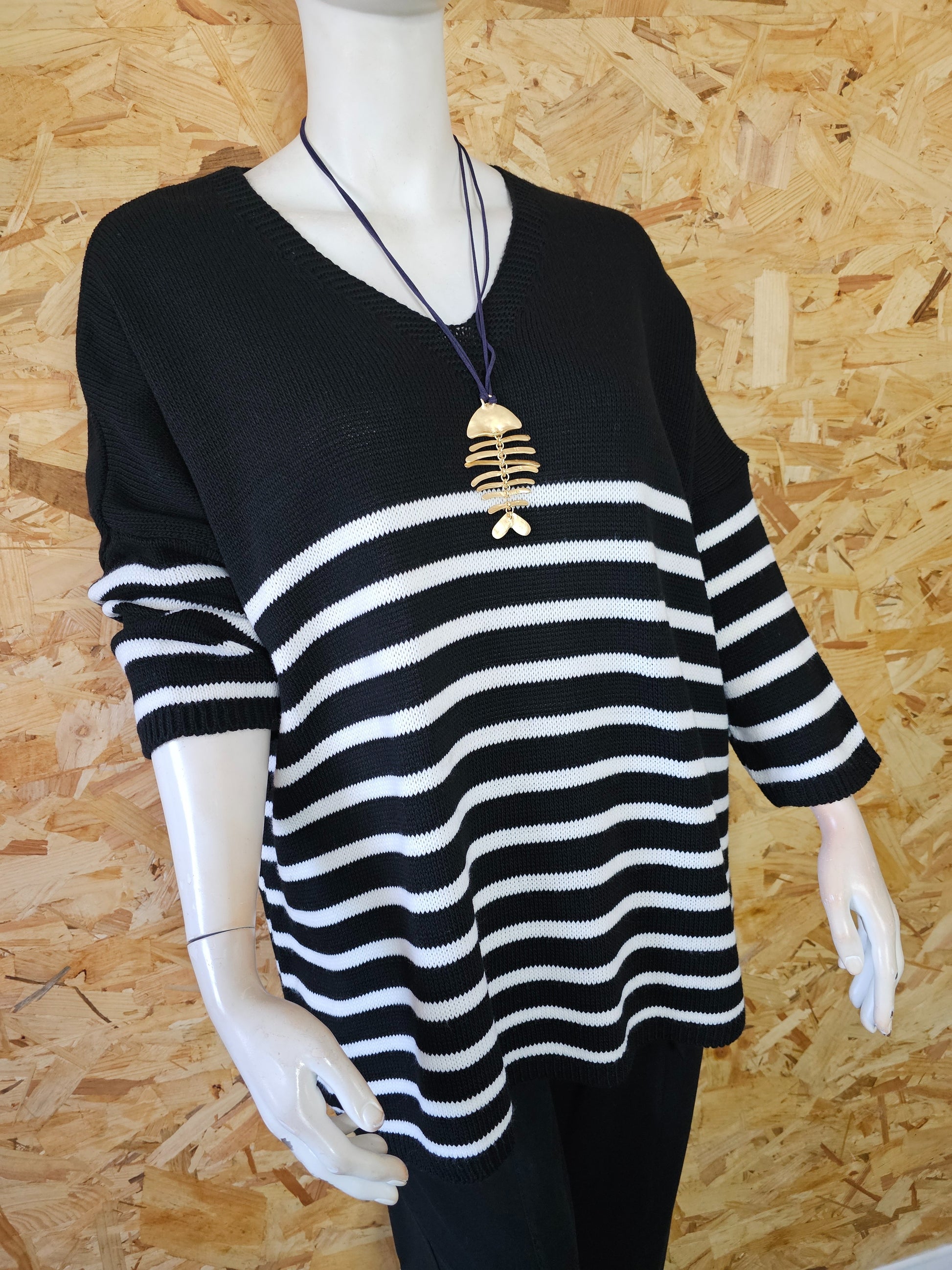 Adoptez l’élégance intemporelle avec ce pull marinière grande taille, un incontournable de la saison. Son col en V sublime la silhouette féminine tout en apportant une touche de modernité classique. Conçu pour allier confort et style, il vous accompagne avec aisance du quotidien aux occasions plus habillées. Parfait pour répondre aux attentes d’une garde-robe actuelle et raffinée.
