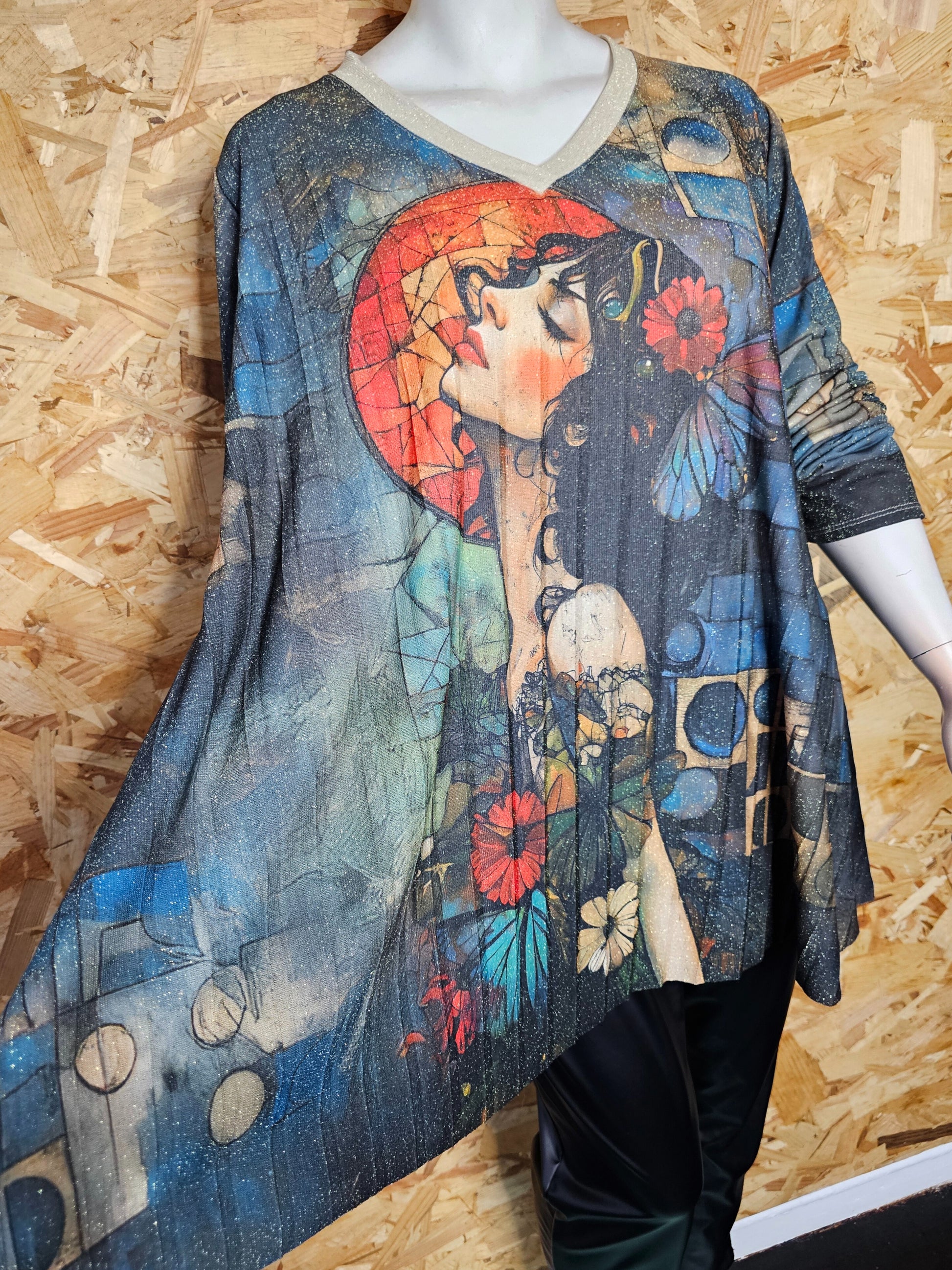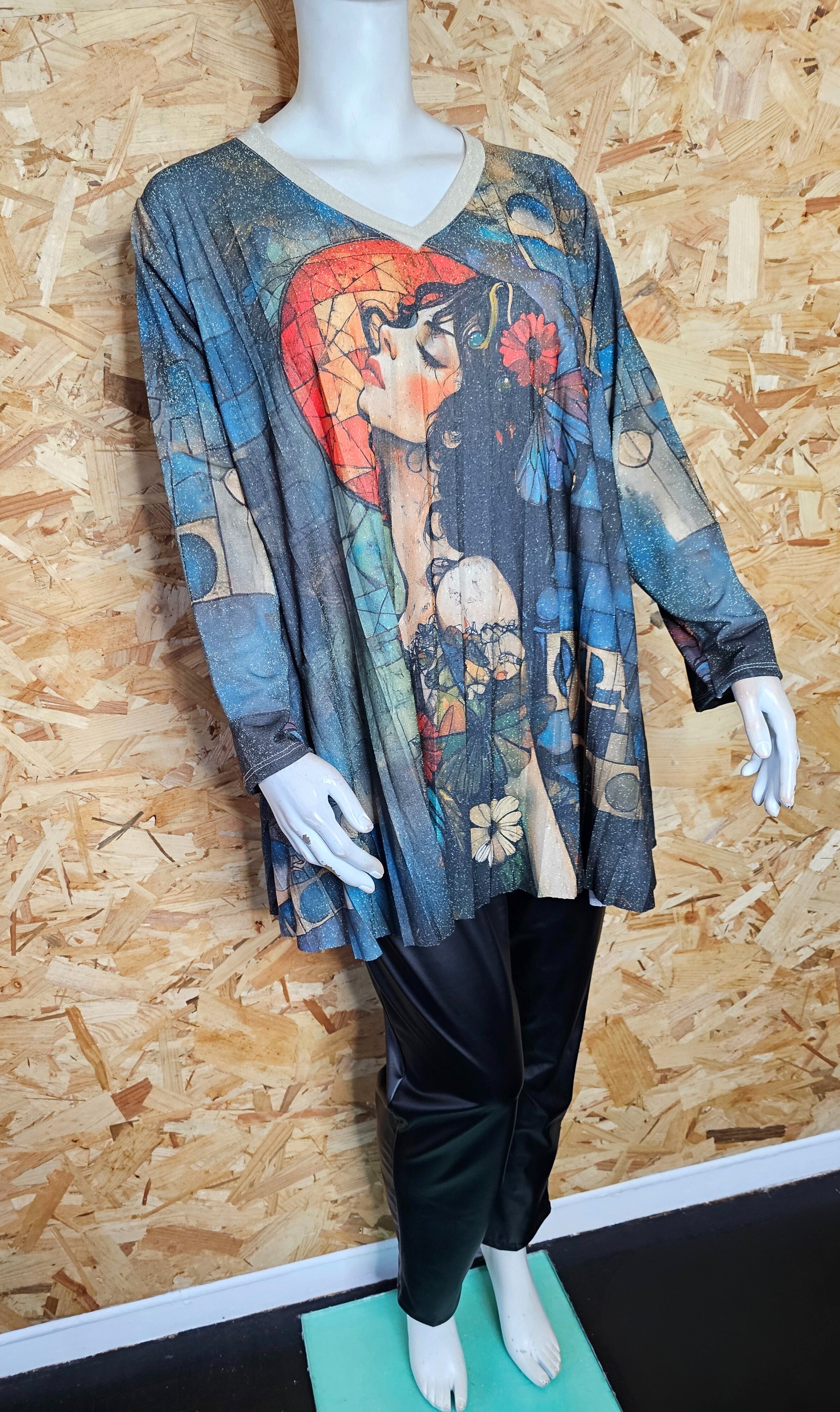 Tunique évasée, plissée motif "art déco"