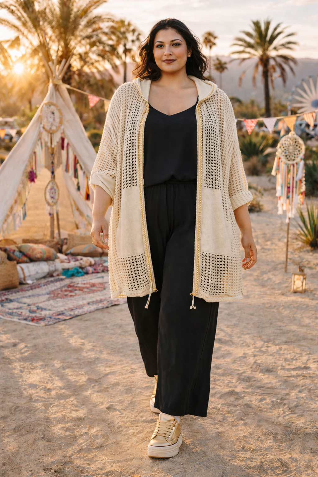 Une pièce ajourée, façon résille mais dans un tissage en maille de qualité. Des détails or sur la capuche , les contours de la veste et les poches. Elle est vraiment très jolie dans son inspiration sportswear chic et c'est une pièce que vous ne verrez pas sur le dos de tout le monde !